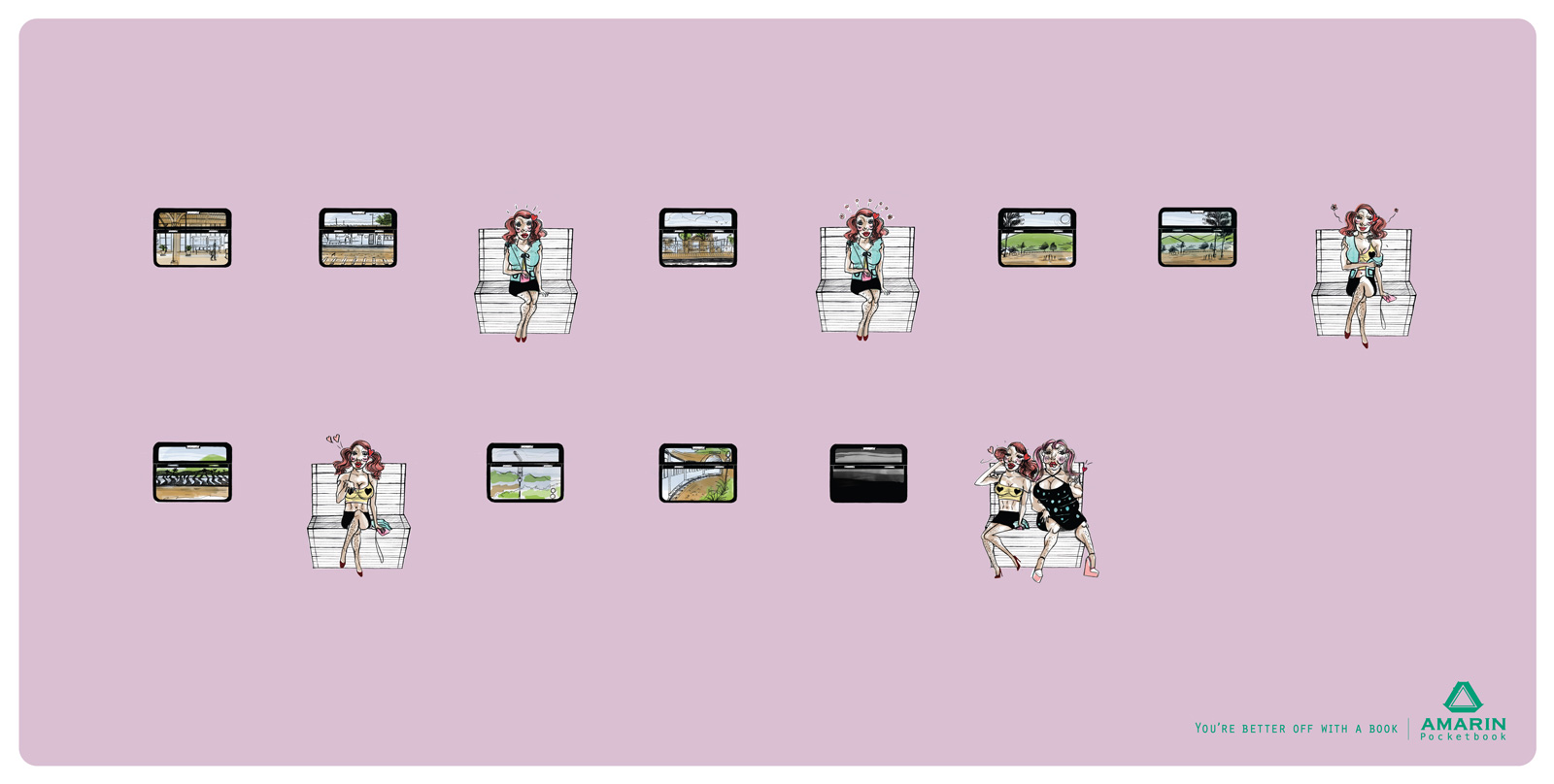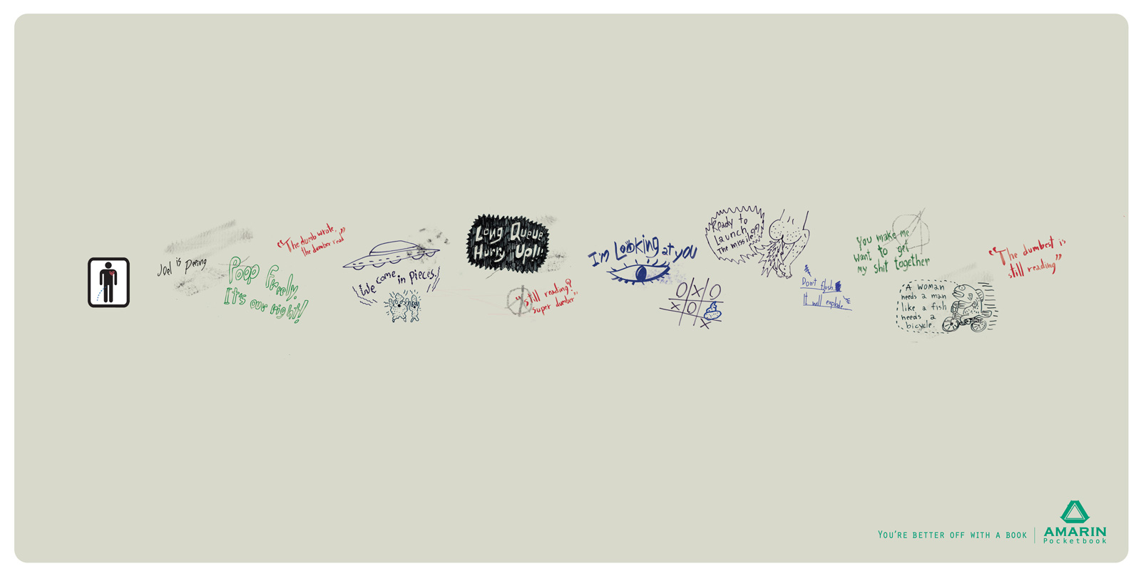 Intéressante campagne pour cet éditeur de livres de poche thaïlandais qui s’appuie avec humour sur les lieux de lecture les plus fréquents : la plage, les toilettes ou les transports.