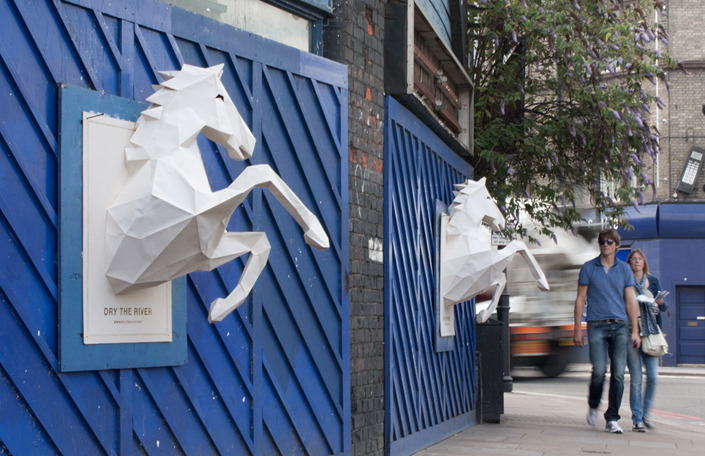 Les affiches ont été créées par l’artiste français, Xavier Barrade, grâce à l’outil de modélisation 3D, Google Sketch Up. Chaque affiche a nécessité 35 heures de travail. L’histoire ne dit pas combien d’affiches ont été clouées dans les rues de Londres pour pouvoir évaluer le coût de cette opération. Mais cela démontre qu’on peut être créatif en affichage sauvage, sans faire de teasing.