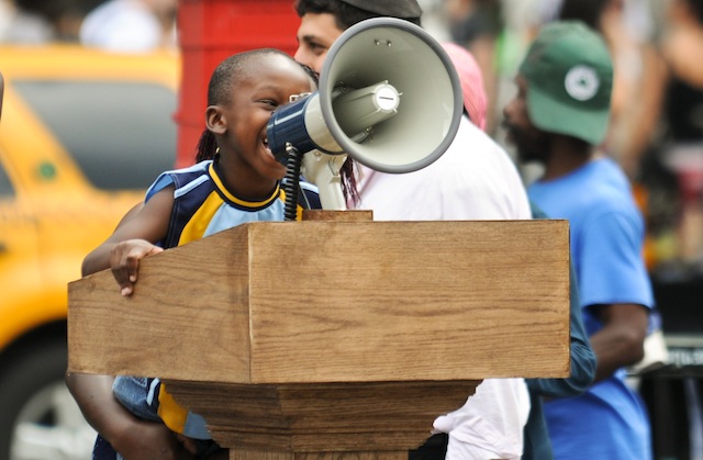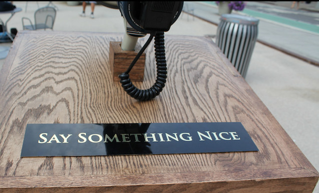Et récemment le happening « Say something nice ». Une idée simple : un mégaphone attaché à un pupitre, placé au milieu d’une place à Manhattan, Union Square, avec une inscription « Dites quelque chose de sympa »