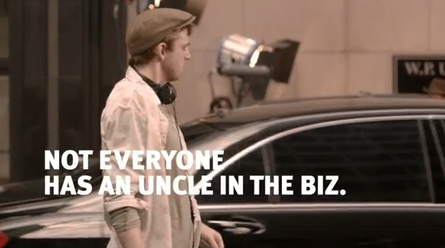 C’est le personnage clef des 3 films télévision réalisés pour promouvoir le 36e Festival International du Film de Toronto (TIFF) qui commence demain, le 8 septembre (avec le soutien financier de la Royal Bank of Canada). Un insight original, basé sur le fait qu’il est difficile d’émerger dans la grande famille du cinéma quand on a pas les bonnes connexions. Et quoi de plus naturel pour un festival du film que de soutenir les jeunes talents ! Parmi les 300 films projetés pendant 10 jours de festival, ce serait dommage de ne pas leur laisser une chance…Un clin d’oeil au Festival de Cannes ? La suite dans un mois avec le Festival International de Vancouver (après le TIFF, le VIFF).