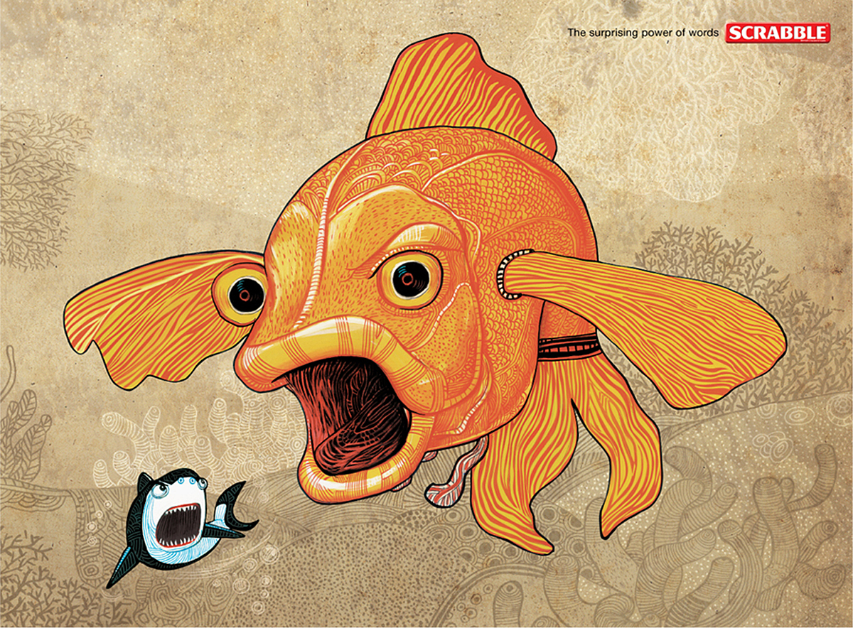 Et la stratégie du scrabble consiste a accumulé le maximum de points en fonction des lettres et du plateau… ce qui modifie quelque peu notre vision des choses. Le pouvoir des mots peut nous surprendre… C’est l’angle d’attaque de la campagne d’affichage du Scrabble en Inde en 2010.