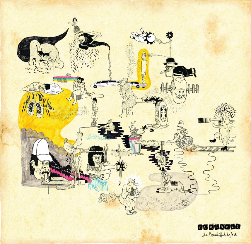 La marque avait déjà initié ce concept en 2008, en s’appuyant sur l’idée de « faire jaillir le pouvoir des mots et de faire imaginer à quoi pourrait ressembler une grille Scrabble si les mots prenaient vie » ! Une campagne presse et télévision très « cadavre exquis » pour un « Beautiful Word »