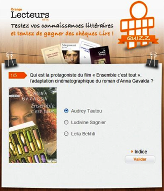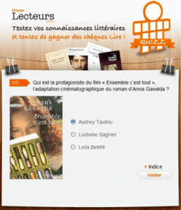 Chaque mercredi de la semaine, 7 nouveaux quizz sont mis en ligne pour permettre aux joueurs de tester leurs connaissances littéraires et de gagner des chèques Lire. Un véritable rendez-vous littéraire qui permet d’animer et de fidéliser sa communauté. Les quizz se présentent sous la forme de 5 questions. Chacune d’entre elle est accompagnée d’un indice dissimulé sur le site Lecteurs.com, renforçant l’interconnexion entre les deux plateformes.