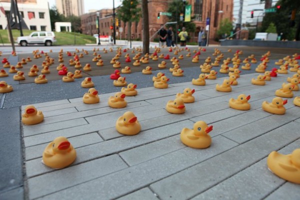 Qui n’a pas un souvenir ému du canard en plastique dans sa baignoire ? Le musée du design d’Atlanta a bien compris la valeur émotive de ce petit objet. Afin d’informer de son récent déménagement et de promouvoir sa nouvelle exposition « le design des salles de bain », le musée a réalisé une opération de guerilla marketing : l’invasion des Rubber Duck dans les rues d’Atlanta. Résultat impressionnant…