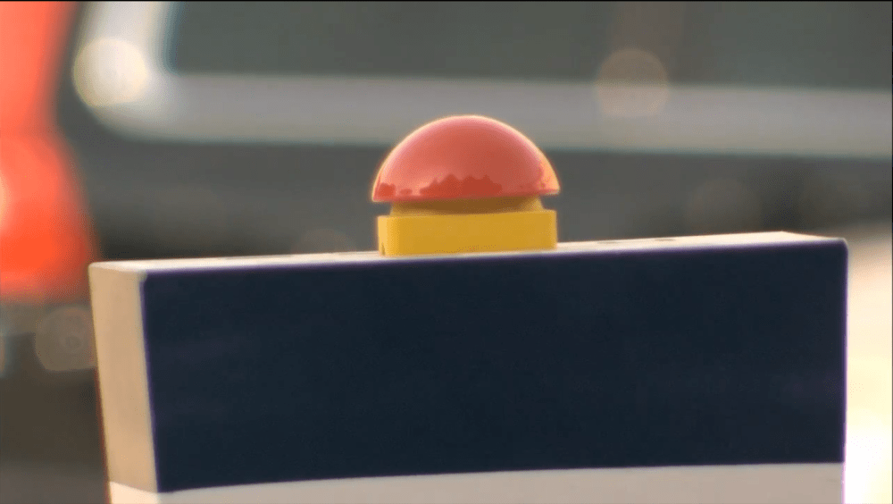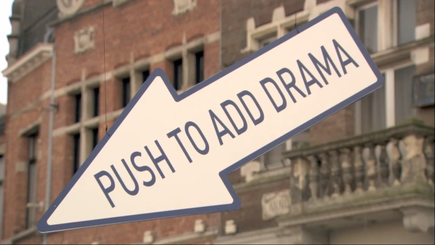 Quand on appuie sur le bouton, on provoque un drame. C’est l’idée événementielle qui a été retenue par la chaîne de télévision belge TNT pour son lancement. Ils ont installé un bouton pressoir sur la place d’une petite ville flamande avec un panneau en forme de flèche.