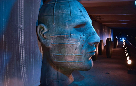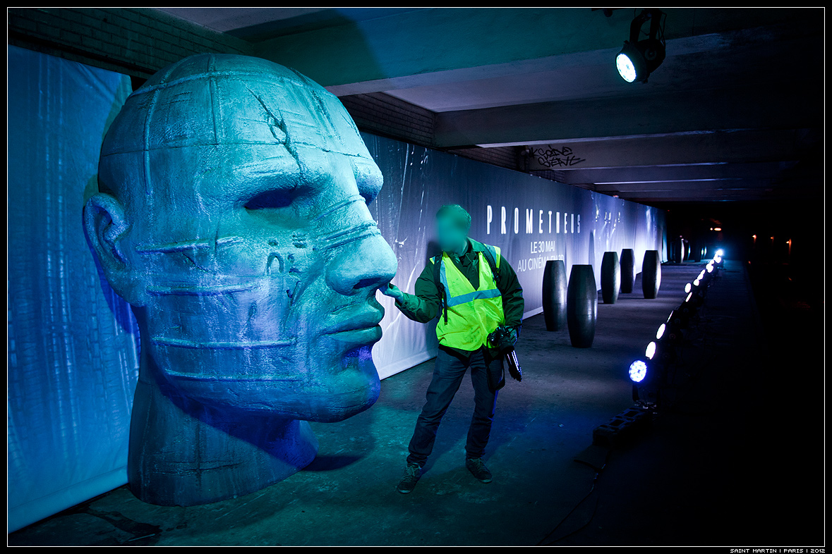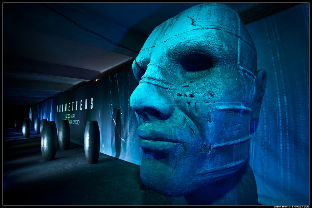 L’univers du film est au rendez-vous : une tête géante de 2,80m et une vingtaine de stèles éclairées au LED bleu recomposent ainsi l’exact décor de la grotte du film. On n’hésite pas à vous en mettre plein les yeux pour ce film qui s’inscrit dans la veine des Aliens. Car n’oublions pas que la recherche de nos origines pourrait mener à notre fin. Ca, c’est dit !