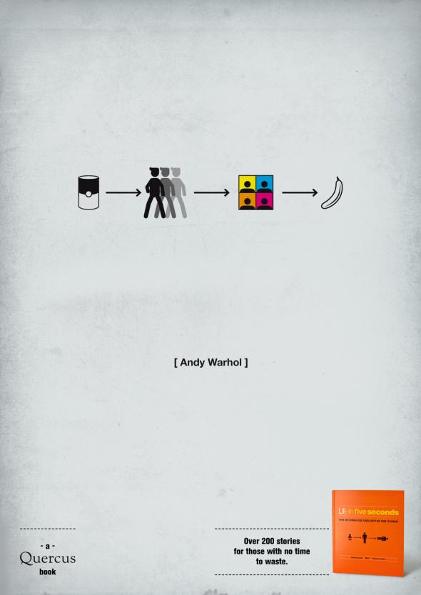 Il paraît que la vie est trop courte !? C’est en tout cas le crédo du livre « Life in five seconds », aux éditions Quercus (Italie), qui nous livre 200 portraits aussi variés que Dieu, Alice aux pays des merveilles, Les Beatles…. Un exercice de style plus ou moins réussi, mais un vrai challenge.. 5 secondes, c’est court ! Un livre qui surfe sur la tendance du moment. A noter l’app qui anime 5 pages du livre… seulement 5 pages !