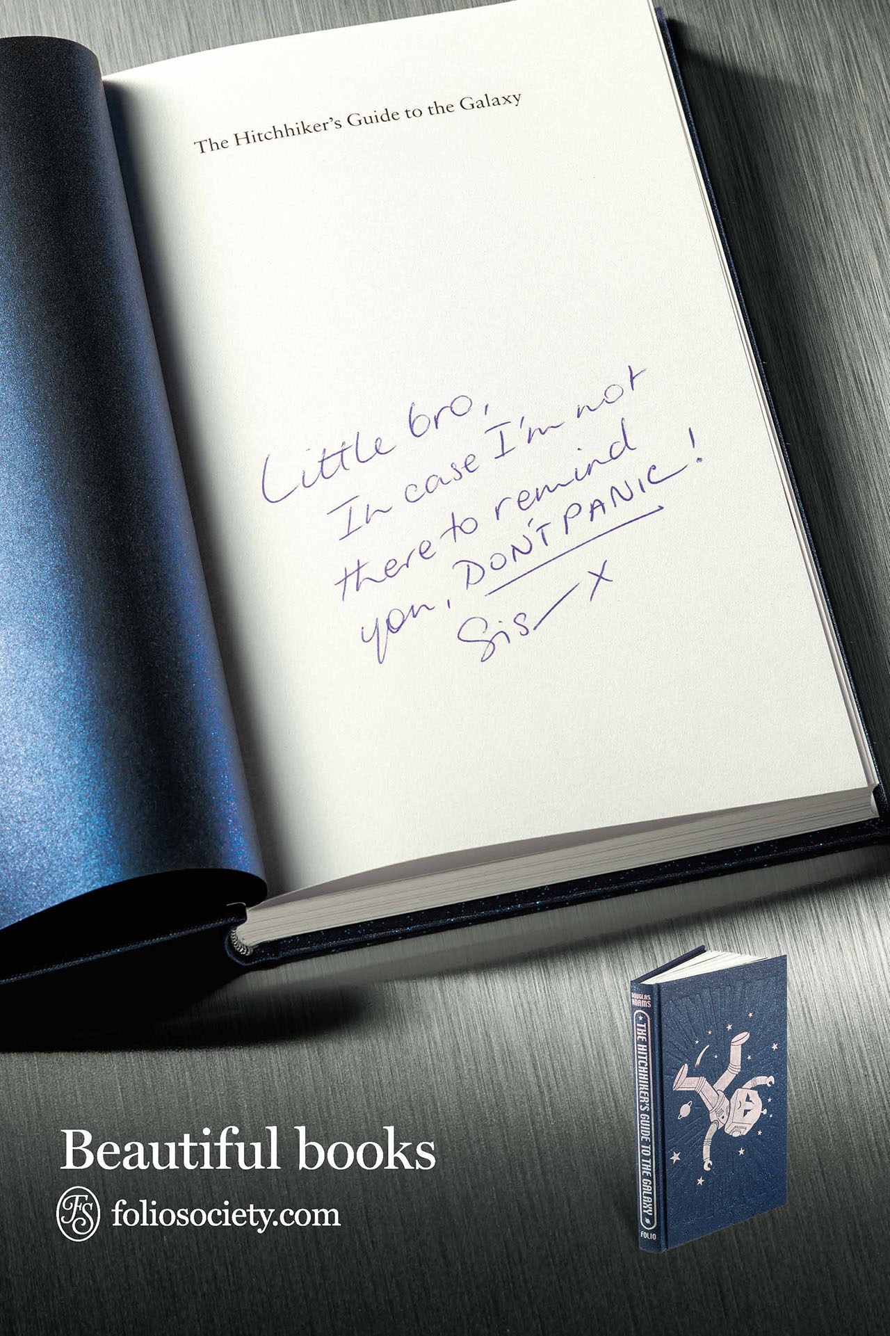 Folio Society est un éditeur britannique qui croit encore qu’un classique peut prendre une nouvelle dimension dans un beau livre. Et il n’a pas forcément tort : le contenu tout comme le contenant est enrichi (livres reliés, illustrations de qualité,…) faisant de chaque roman un objet que l’on offre… et que l’on dédicace (comme en atteste cette campagne print).