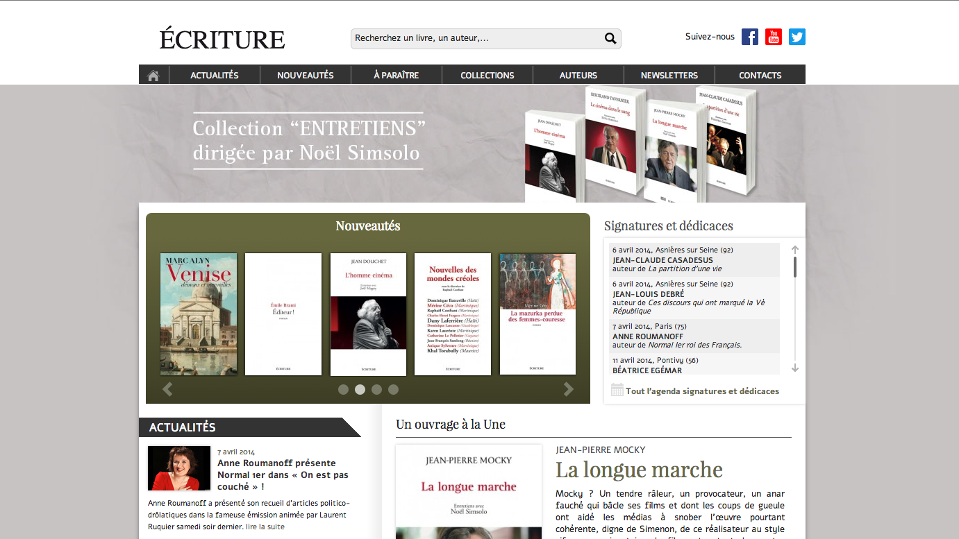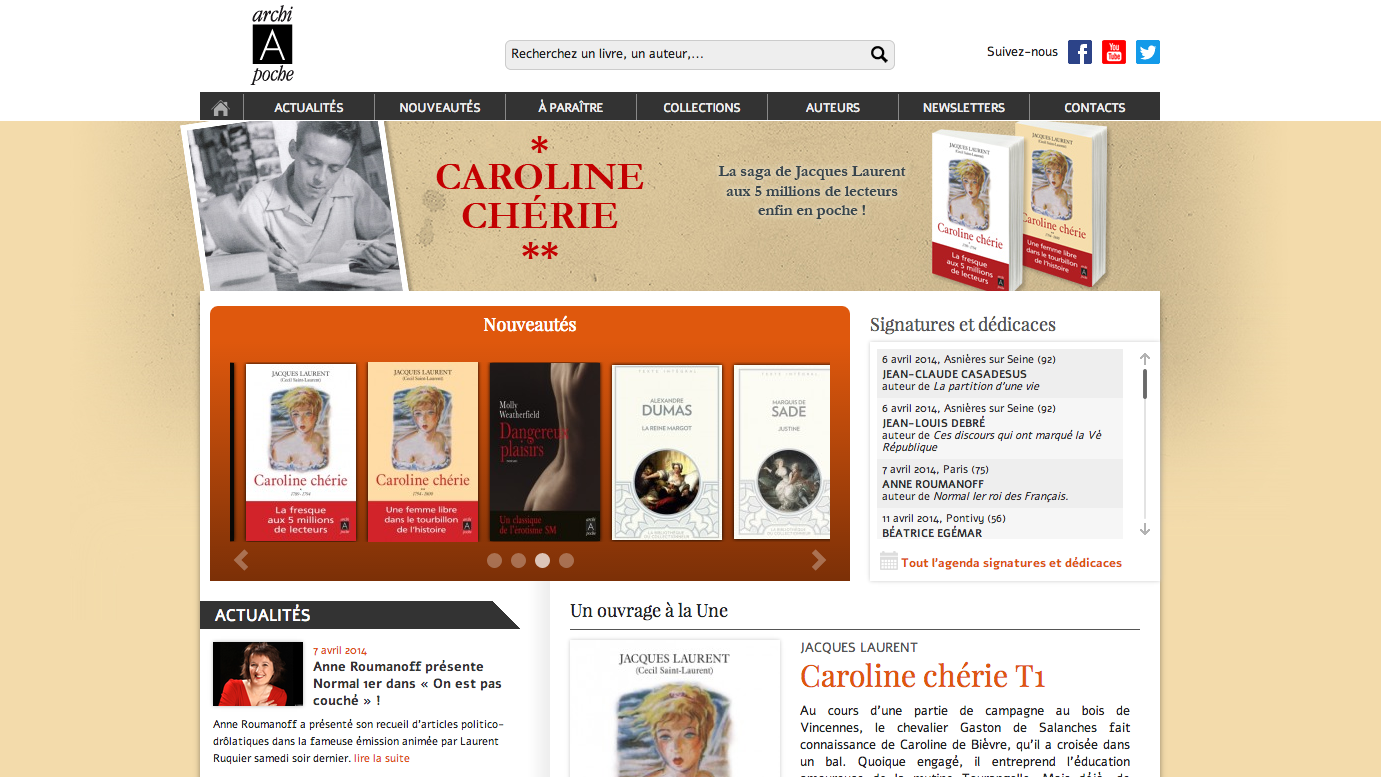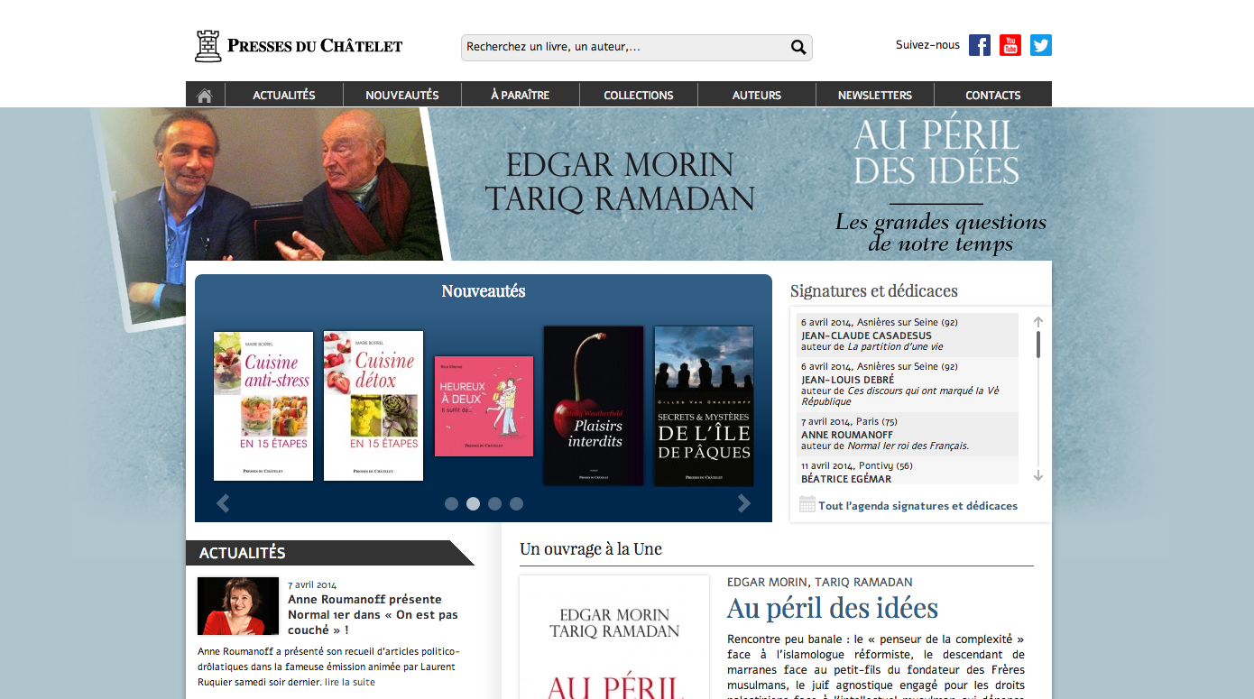 En tenant compte de ces éléments, Jem a réfléchi avec les éditions de l’Archipel a 4 sites tournés vers l’actualité, intégrant l’ensemble du catalogue des 4 marques (L’Archipel, Presses du Châtelet, Ecriture, Archipoche), et nourris très simplement en contenu au quotidien pour les équipes internes. 4 sites construits à partir de la plateforme wordpress qui prennent un nouveau visage en fonction du titre à la Une et donnent toute sa place à la politique éditoriale de la maison, comme l’a décrit Jean-Daniel Belfond : « Moitié fiction, moitié non-fiction, nos cent nouveautés annuelles abordent certes des rives éloignées les unes des autres, mais ont un point commun : elles ont toutes pour mission de donner envie. »