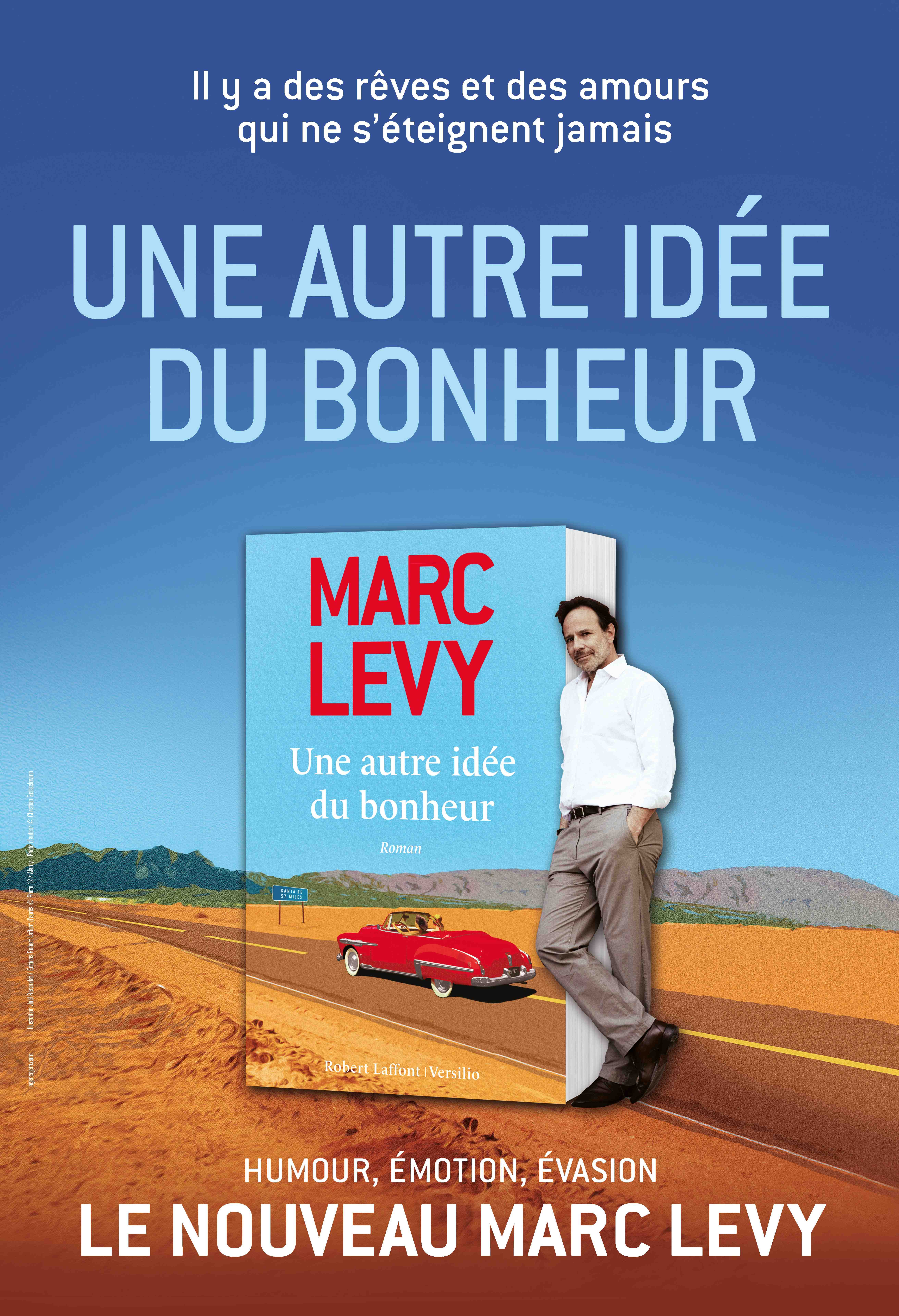 Il est numéro 1 des ventes et en affichage partout sur les murs en ce moment : c’est le nouveau Marc Levy, Une autre idée du bonheur, aux éditions Robert Laffont/Versilio. La couverture comme l’histoire suggèrent que nous sommes dans un road trip, sur la route dans l’Amérique des grands espaces. L’idée a donc été de traduire cette vision quasi cinématographique, pour que le lecteur se projette littéralement dans l’histoire. USA is bigger… et le nouveau Marc Levy est « bigger than life ».