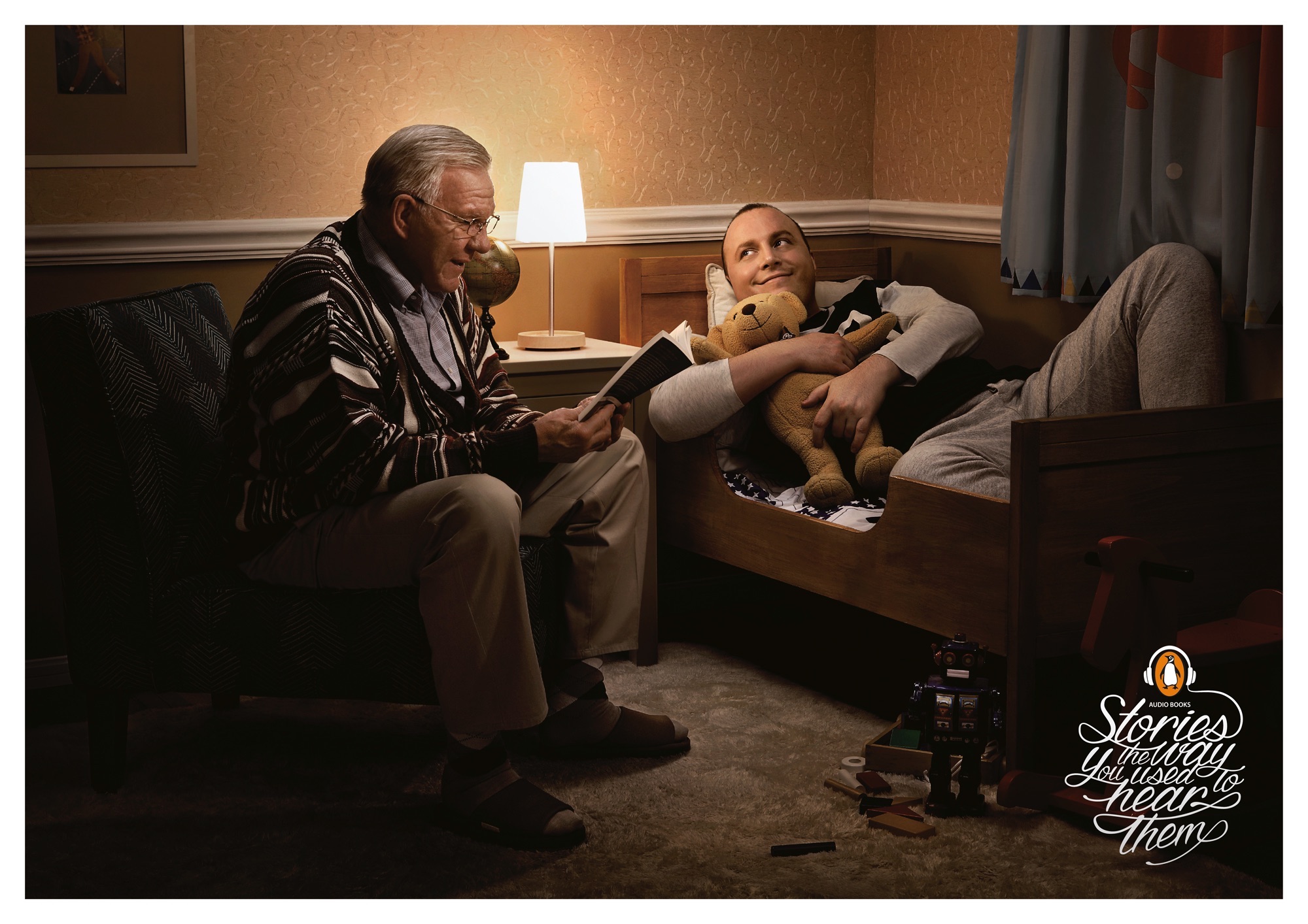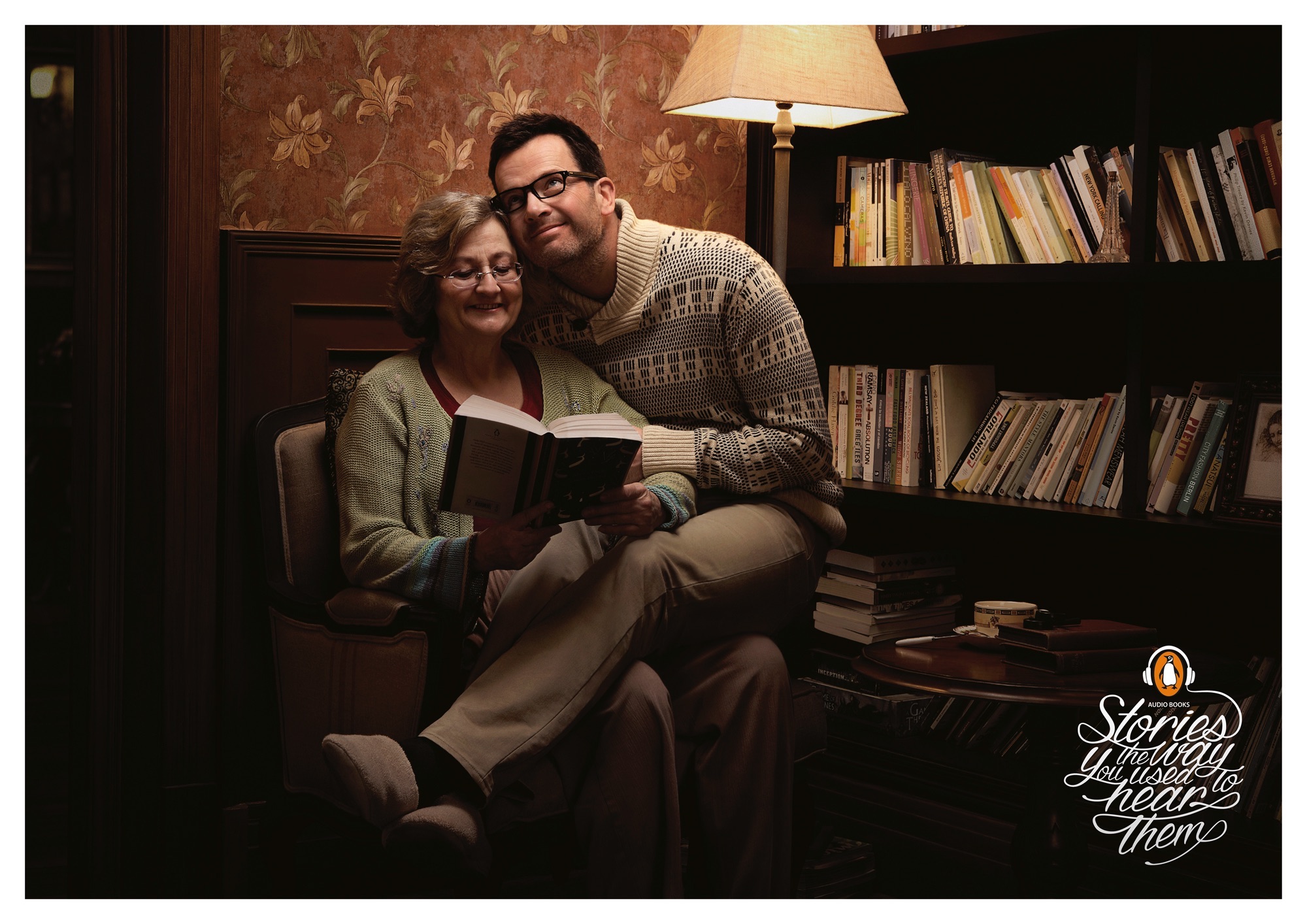 Belle campagne print pour les livres audio Penguin en Chine : il est vrai que lorsqu’on écoute un livre audio, quelqu’un nous raconte une histoire. Et cela nous rappelle des souvenirs d’enfance ! Alors, laissons-nous bercer par des histoires…à tout âge !