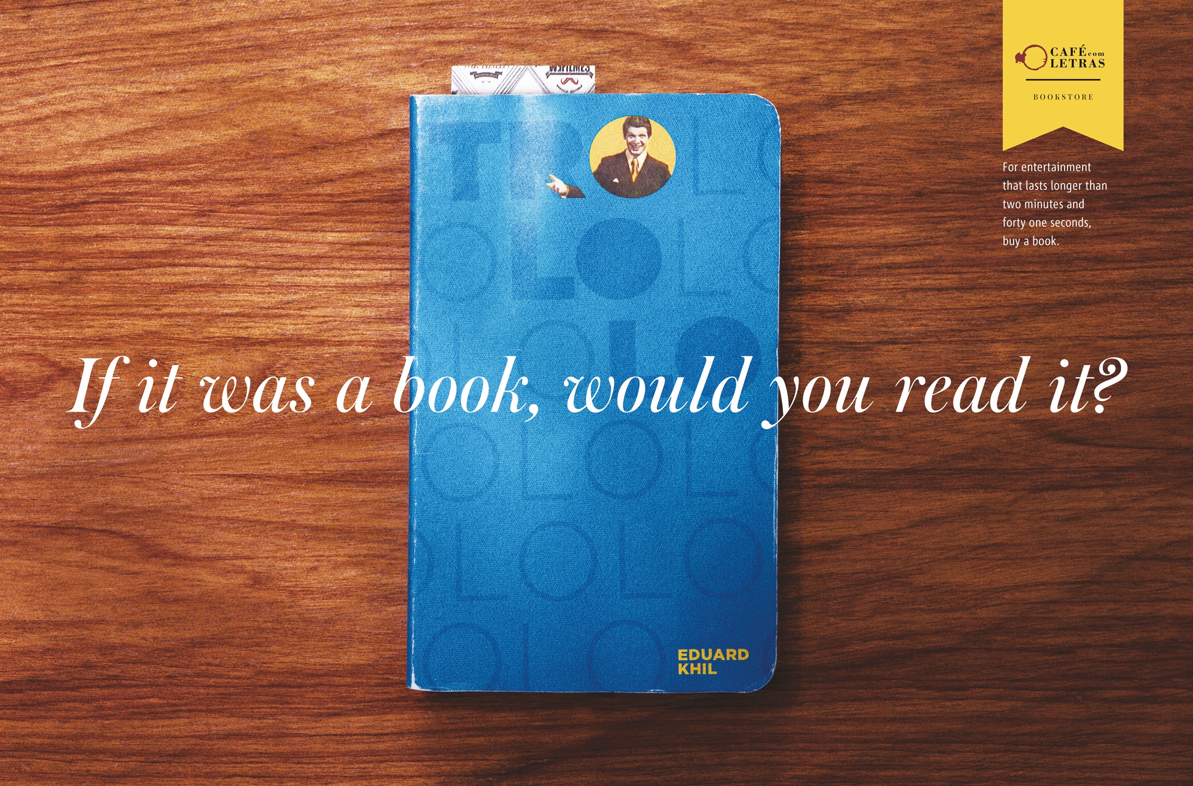 Et si ces vidéos étaient des livres ? C’est l’objet de la campagne print de la librairie Café com Letras. Pour un divertissement qui dure plus de 55 secondes ou 2 minutes 40, achetez un livre !