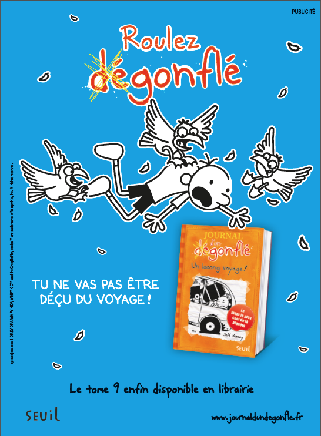 Le tome 9 de la série la plus lue par les 9-11 ans, Le Journal d’un Dégonflé (éditions du Seuil), est en librairie depuis le 7 janvier. Greg nous embarque dans un looong voyage qui tourne très vite à la catastrophe : les toilettes en ruine à la station-service, une mouette complètement folle, un accrochage, un porcelet fugueur,… franchement, vous n’allez pas être déçu du voyage ! A lire d’urgence.