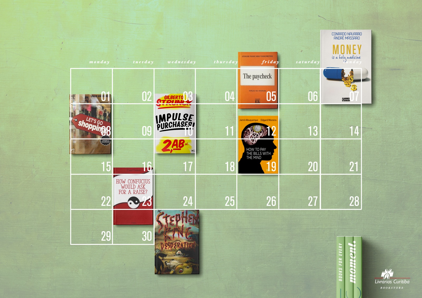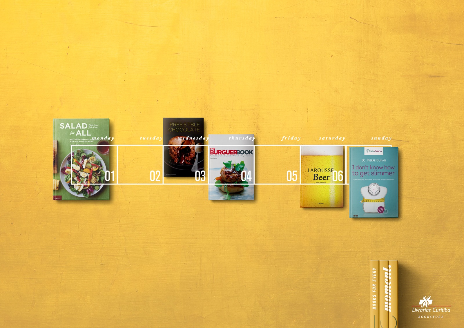 Belle campagne print pour la chaîne culturelle brésilienne, Livrarias Curitiba. Il y a toujours un livre qui vous accompagne au fil des mois et des semaines qui passent, quel que soit votre sujet de préoccupation. Une campagne déclinable à souhait !