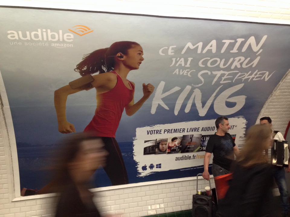 Et il faut désormais compter sur le géant Audible, filiale d’Amazon, qui propose un abonnement mensuel à 9,95€ et qui s’est affiché dans le métro parisien et sous forme de bannière sur internet cet été.