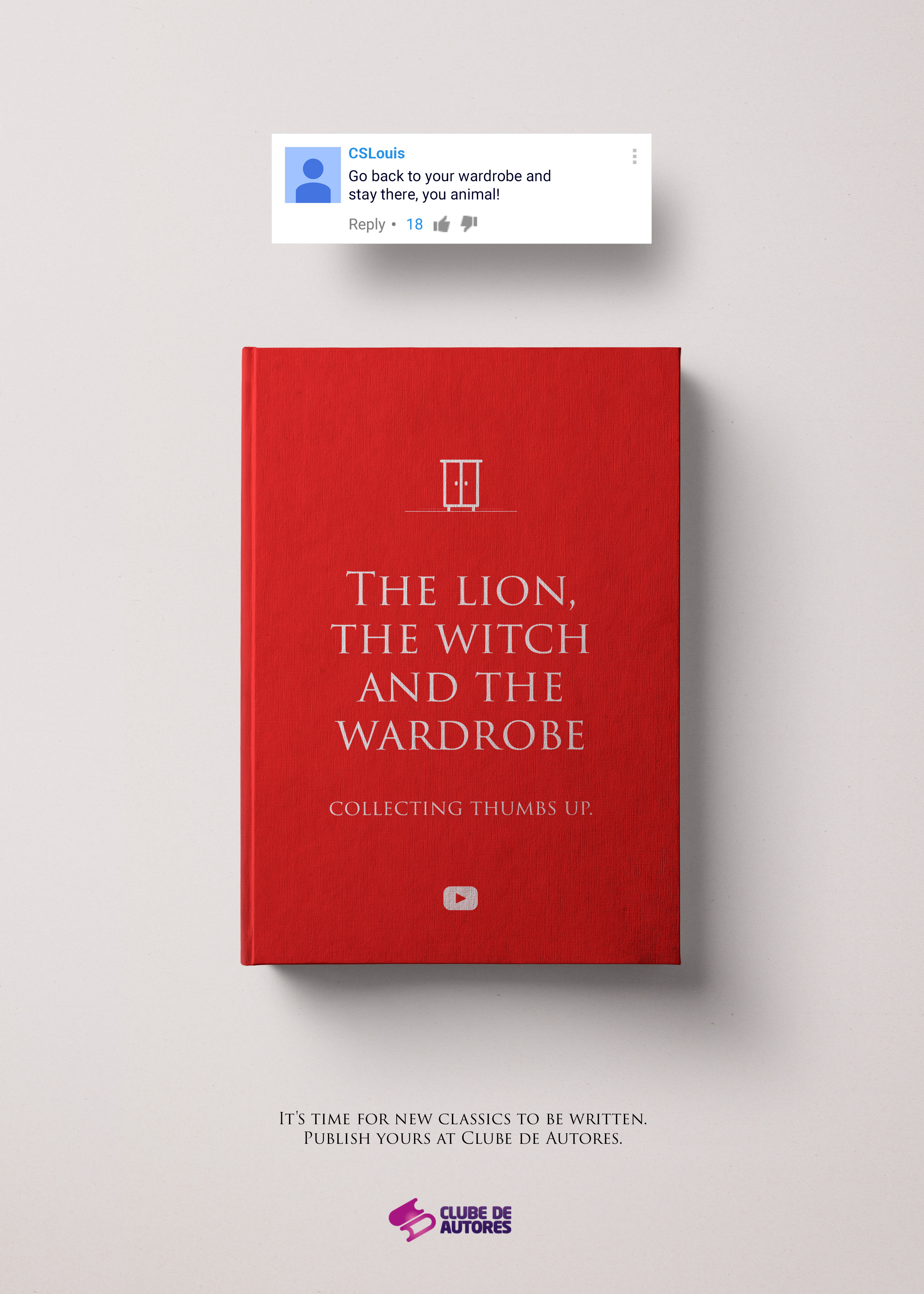 La campagne print met en scène 3 oeuvres très différentes (et les commentaires trouvés sur Twitter, Facebook et Youtube) : Orgueil et préjugés, La couleur des sentiments et Le lion, la Sorcière blanche et l’Armoire magique (premier tome de la série du Monde de Narnia.