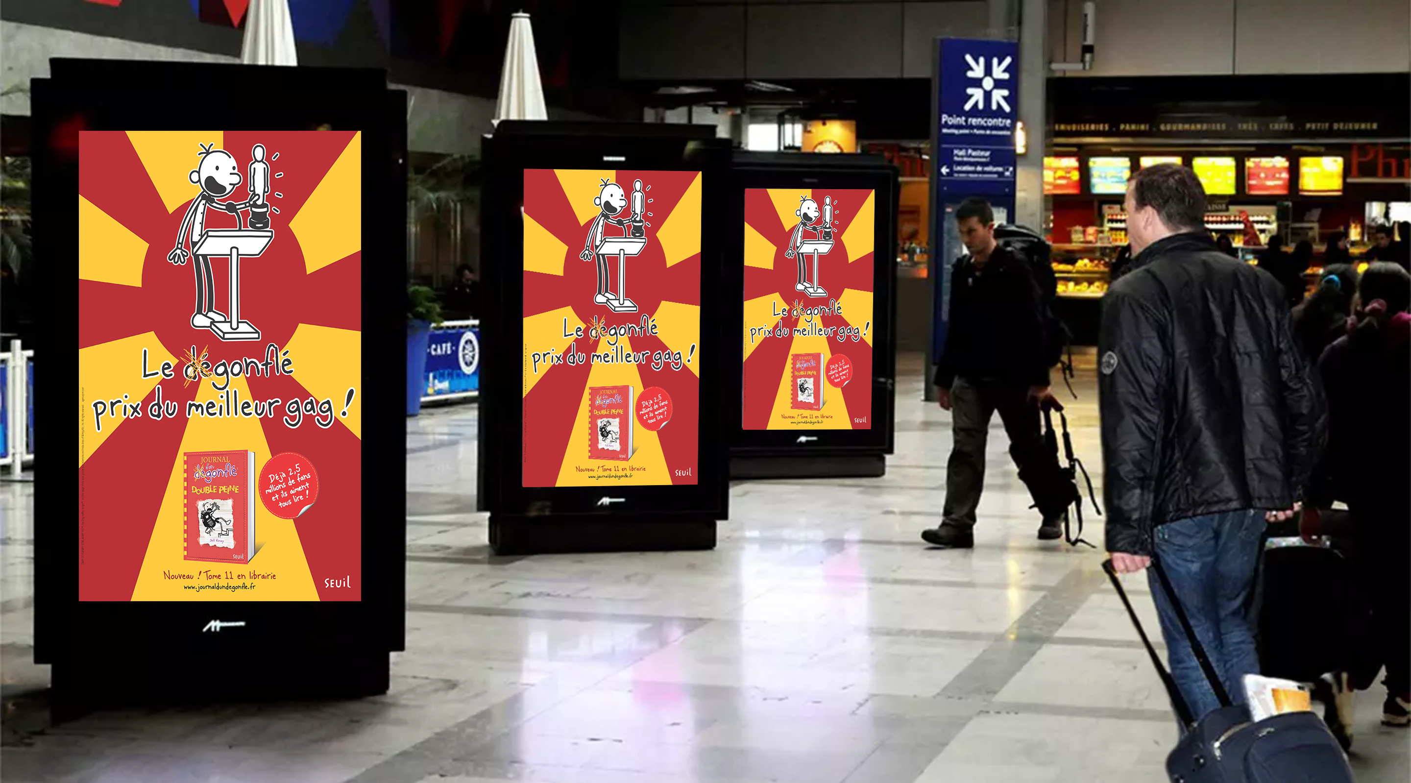 Pour la sortie du tome 11 du journal d’un Dégonflé, la campagne d’affichage met à l’honneur le succès de la série dans les gares.