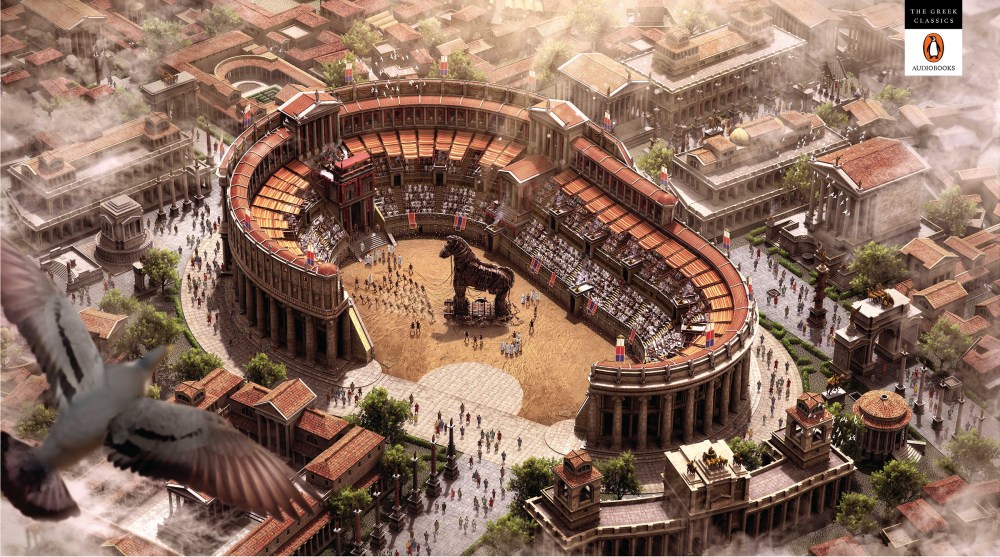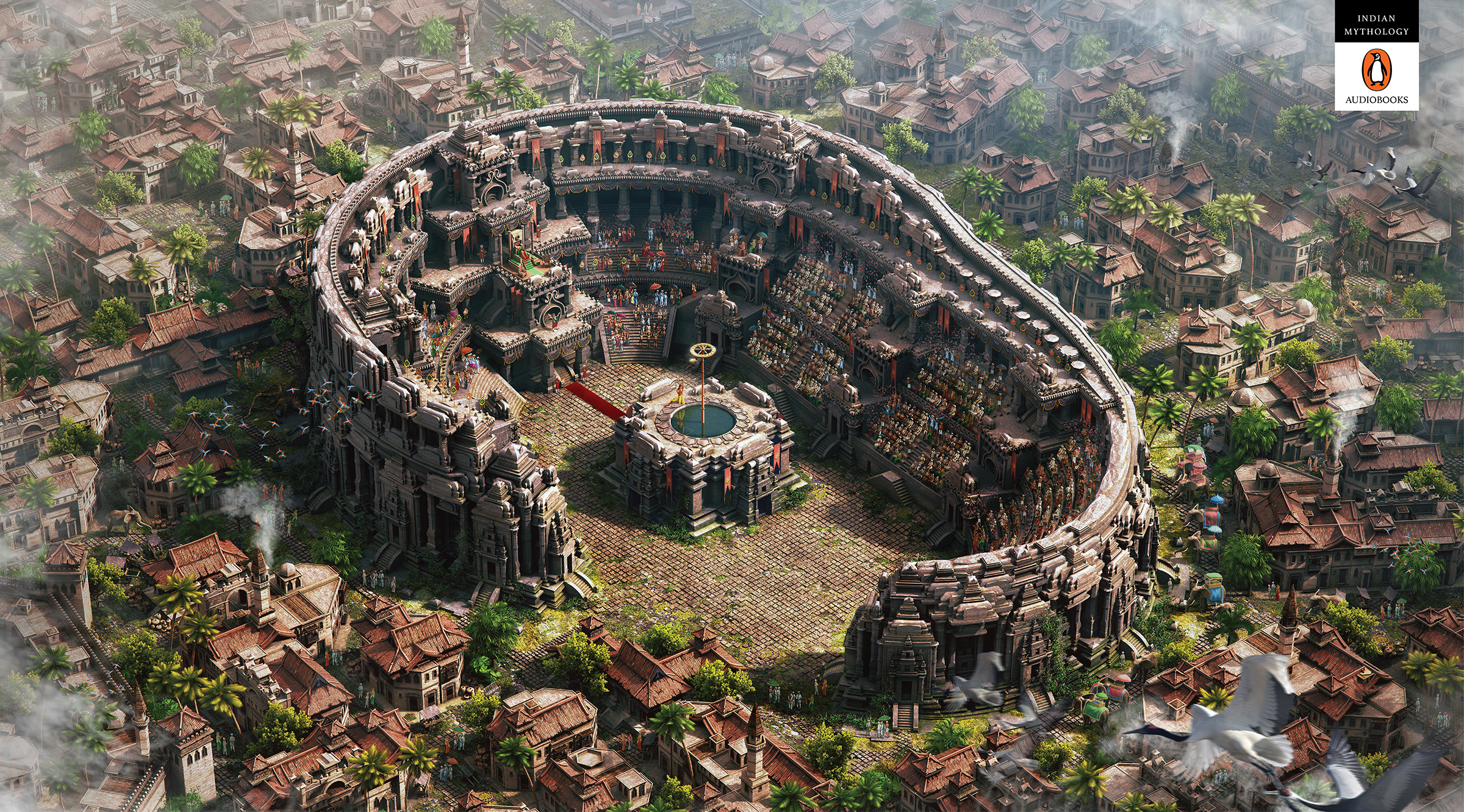 Belle campagne print pour les livres audios de Penguin en Inde. Afin de mettre en avant l’immersion totale des livres audio dans la mythologie grecque et indienne, les affiches mettent en scène un épisode clef de chaque mythologie dans une arène : le mariage de Draupadi (Jaya de Devdutt Patnaik) et le cheval de Troie (L’illiade d’Homère).