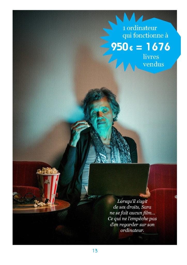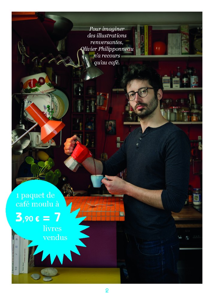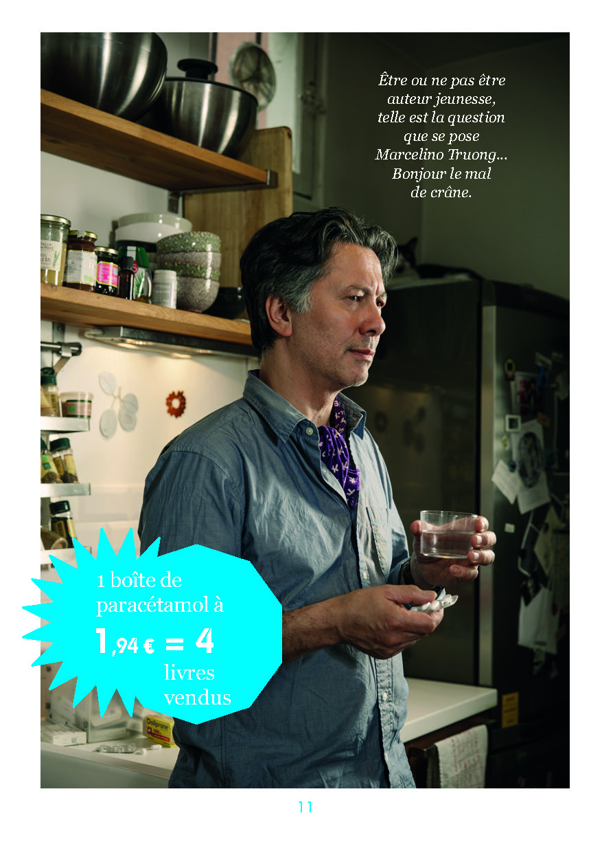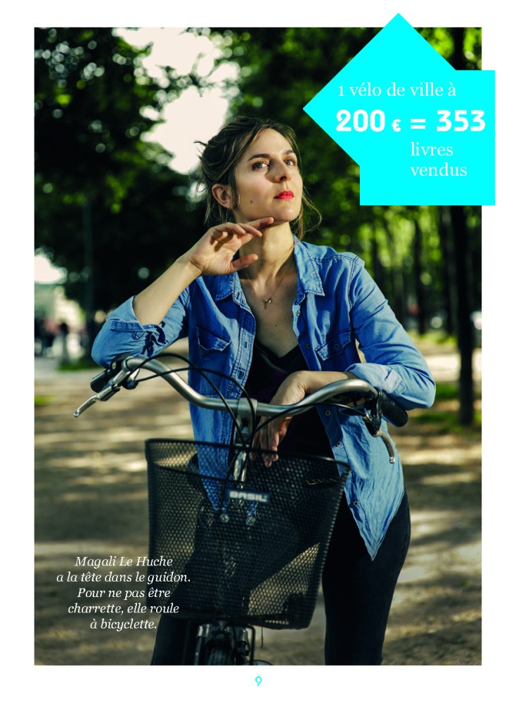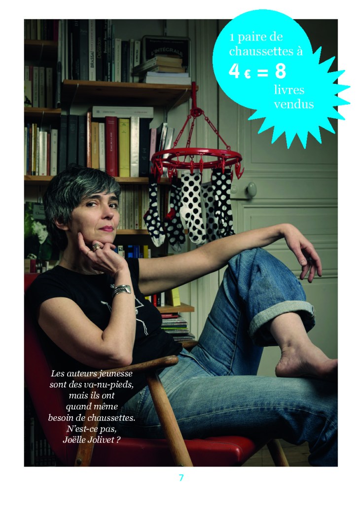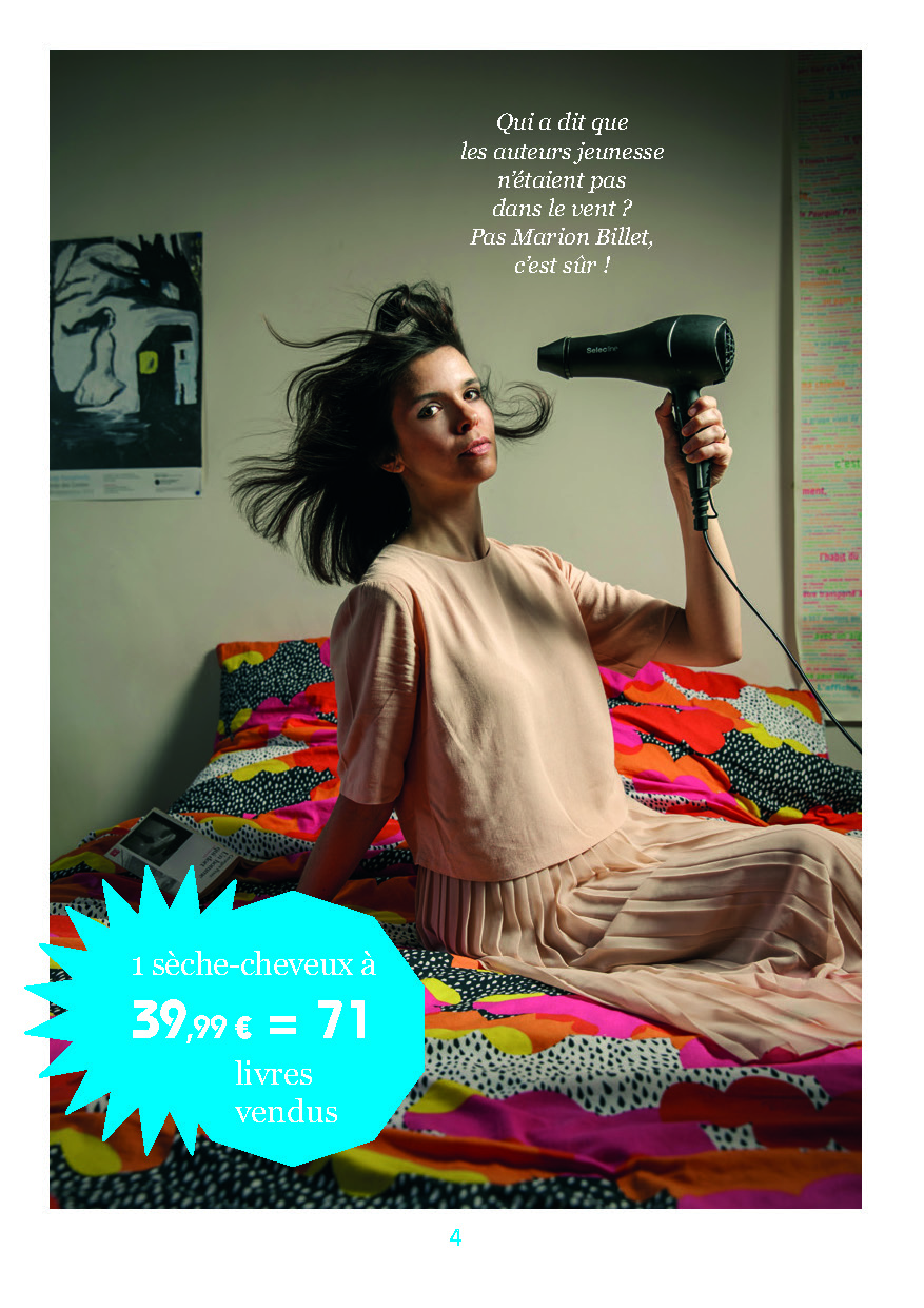On se souvient de la campagne de 2016 réalisée par la société des auteurs dans les arts graphiques et plastiques mettant en scène des auteurs de littérature jeunesse dans leur quotidien. La Charte (association qui regroupe près de 1 400 auteurs, illustrateurs, traducteurs de livres pour la jeunesse) dénonce les droits d’auteur particulièrement bas (10 % en moyenne pour la littérature en France mais seulement 6 % en moyenne pour la littérature jeunesse). Donc, pour faire simple : sur un livre vendu 10 €, l’auteur gagne 6% du HT soit 0,567 €. Afin de rendre cette réalité plus concrète, les auteurs n’ont pas hésité à se mettre en scène en convertissant en nombre de livres vendus chacun de leurs achats du quotidien. Combien de livres vendus pour s’acheter un poulet ? Une chemise ? Un vélo ?