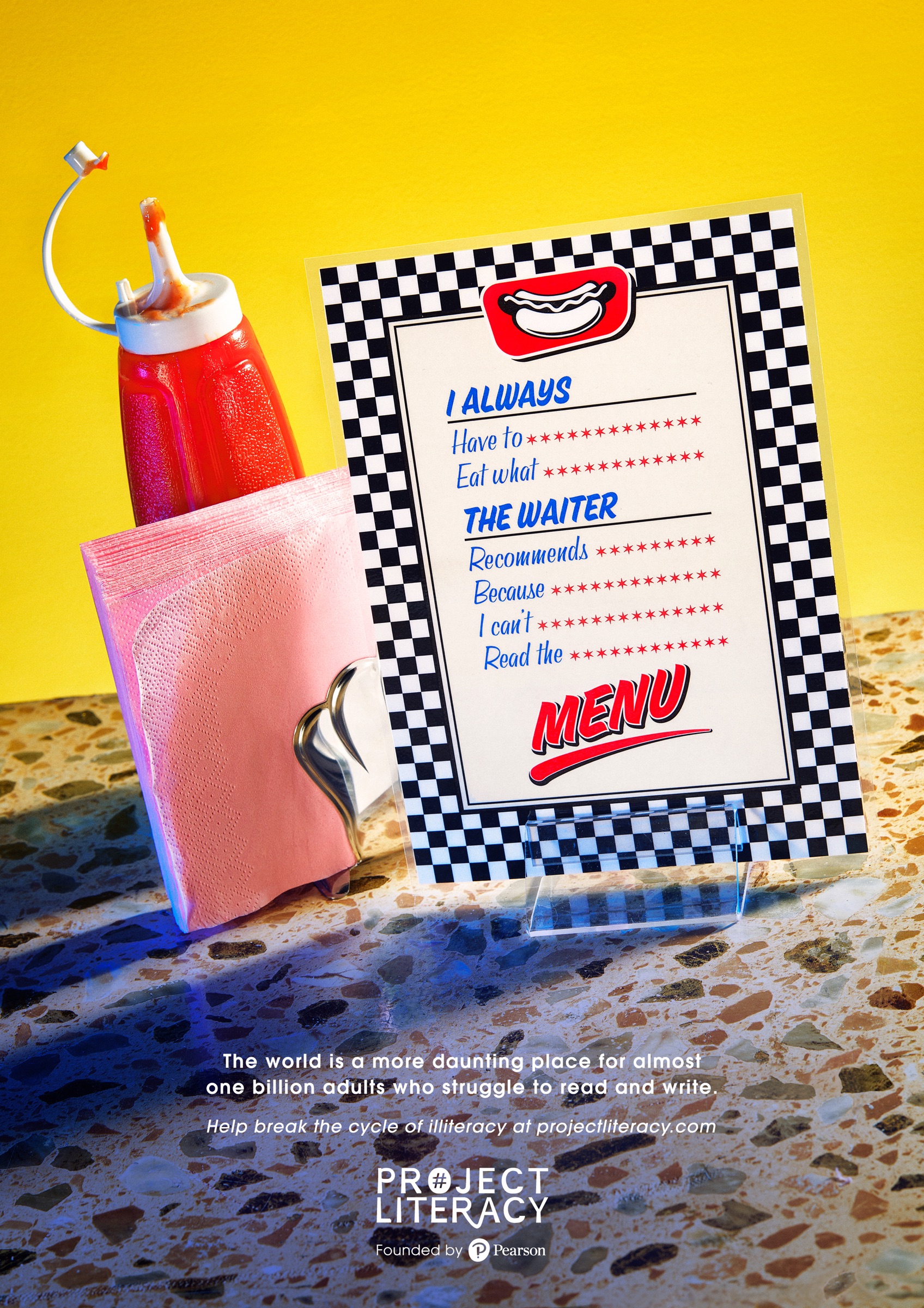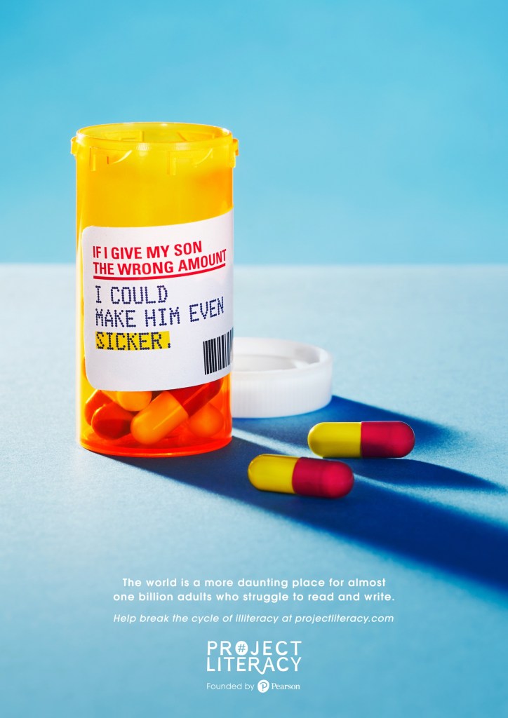 Le monde est plus difficile pour les personnes qui ne savent ni lire ni écrire. C’est la démonstration de la campagne print de l’association Project Literacy, fondée par le groupe éditorial Pearson en Angleterre. Avec 5 visuels différents, la campagne pointe du doigt des situations plus ou moins dramatiques du quotidien pour éveiller les consciences et appeler aux dons. Une campagne simple mais efficace !