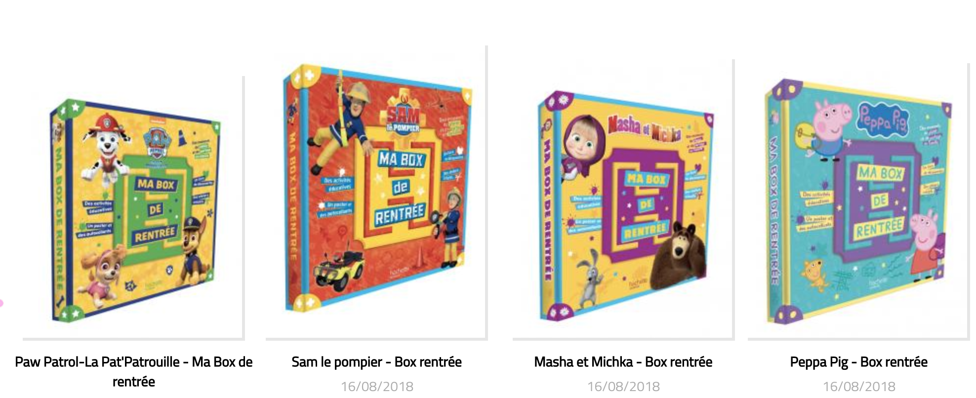 Hachette Jeunesse a lancé en 2018 ses box de rentrée avec 4 références.