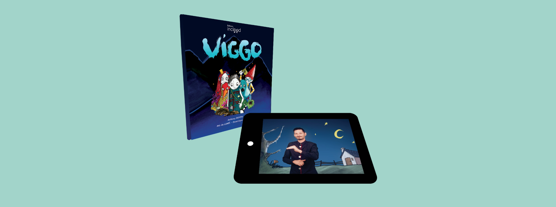 augmentée : en français sur le livre papier et en Langue des Signes française à travers l’application Inclood. Son premier album jeunesse interactif, Viggo, est une adaptation de la création théâtrale éponyme, entièrement bilingue.