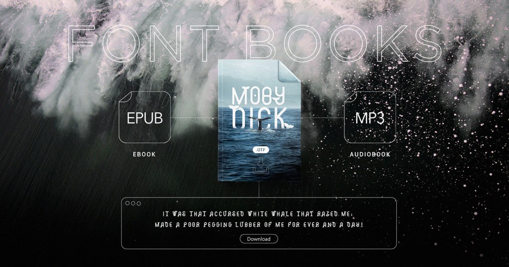Chaque fois que vous téléchargez (gratuitement !) une typo, vous avez également une copie du roman classique qui a inspiré la typo, au format eBook et livre audio.