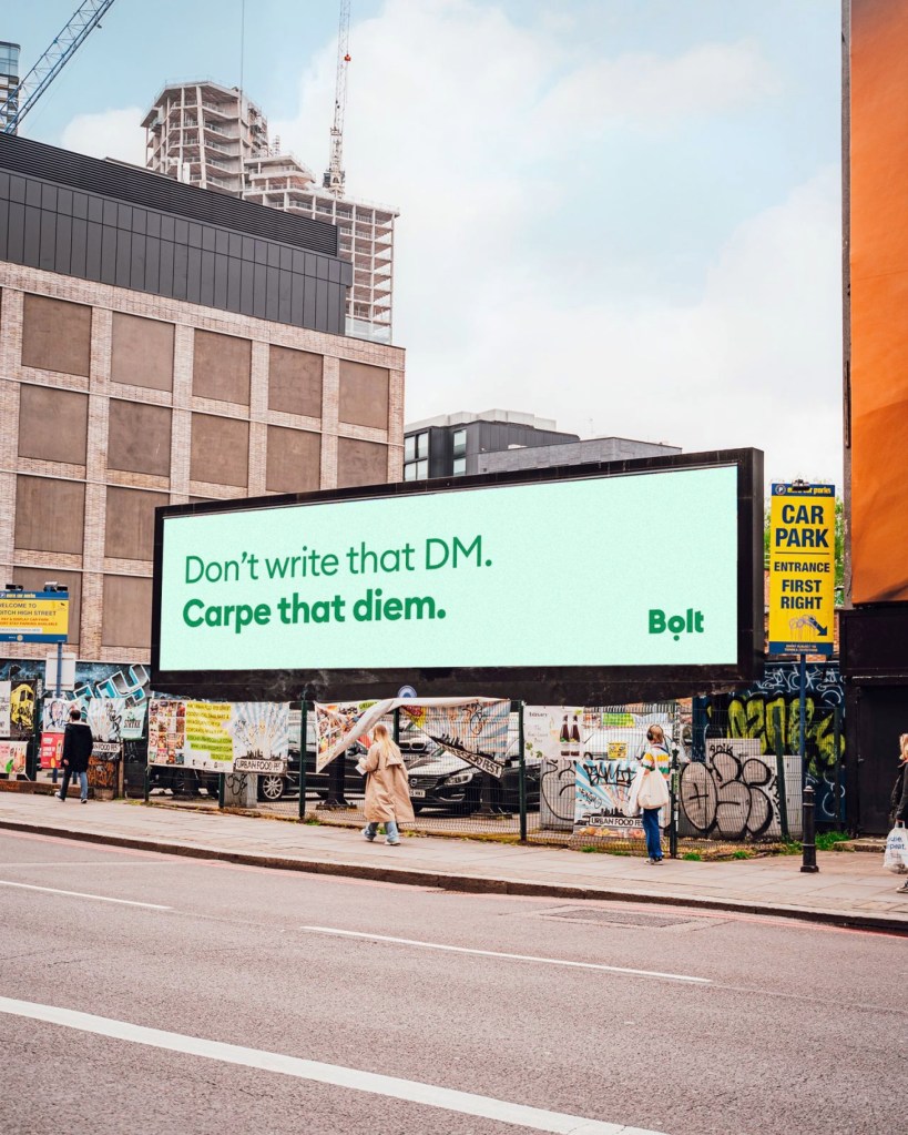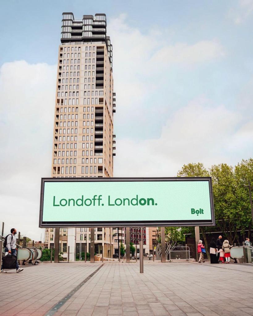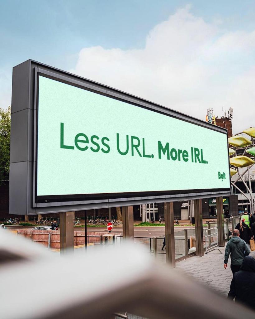 LondON devient LondOFF… c’est la magie du déconfinement ! Pour accompagner cette étape, Bolt, application spécialisée dans la mobilité partagée (VTC, trottinette, …) a lancé une campagne d’affichage typo dans les rues de Londres. Déconfinement signifie retour à la mobilité. Nul doute que Bolt sera l’un des grands gagnants de cette nouvelle liberté. Alors, on passe des URL à IRL (In Real Life : la vraie vie), on utilise son vrai visage pour la visio, on fait plus de bruit,… en bref, on revit. Sympathique clin d’œil à nos mobilités retrouvées !